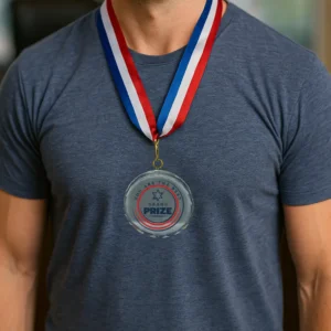 Glass Medals with Metal Frame and 3cm White Ribbon