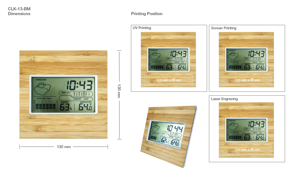 Bamboo digital clocks are compact and lightweight digital clocks. These digital clocks are crafted from bamboo material. Thus, they are eco-friendly and durable clocks. These clocks comprise a digital screen. Apart from showing you the time, it also shows the weather forecast, calendar, alarm, and temperature. Thus, it will keep you updated. Moreover, the temperature status is according to your location. Thus, it’s a multifunctional digital clock. This eco-friendly clock also comprises alarm and snooze functions. So, you can set up alarms for different occasions. This clock comprises a back handle. Thus, this table clock easily stands on your table. This promotional clock is also a useful item as a gift.
