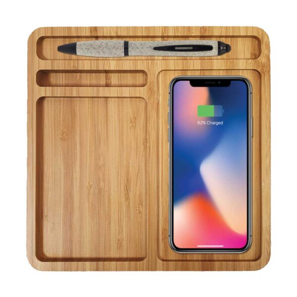 Bamboo 15W Wireless Desk Fast Charging Pad and Organizer