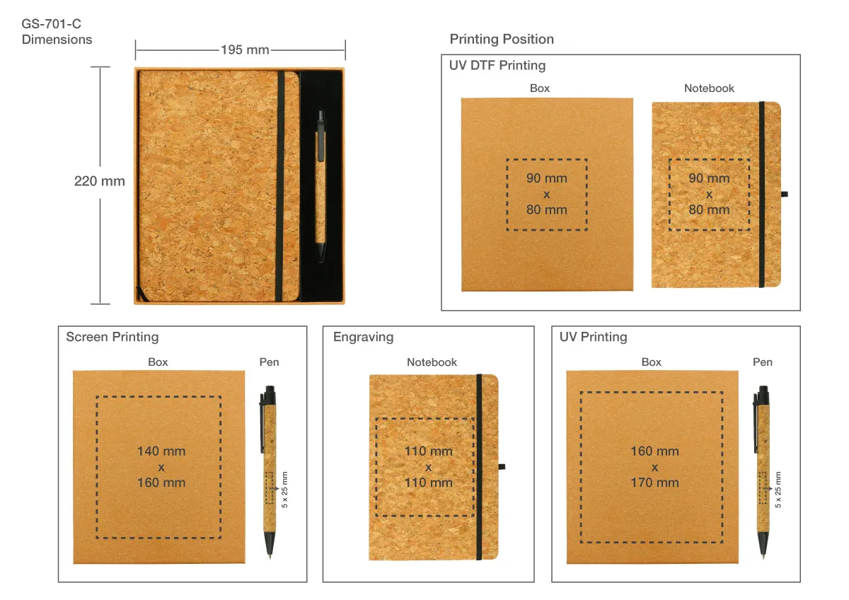 - Logo Imprinting: Options for color printing or embossing on both the notebook and pen.