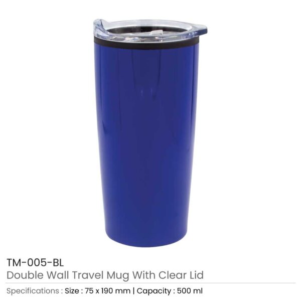 Double-Wall Travel Mugs with Clear Lid