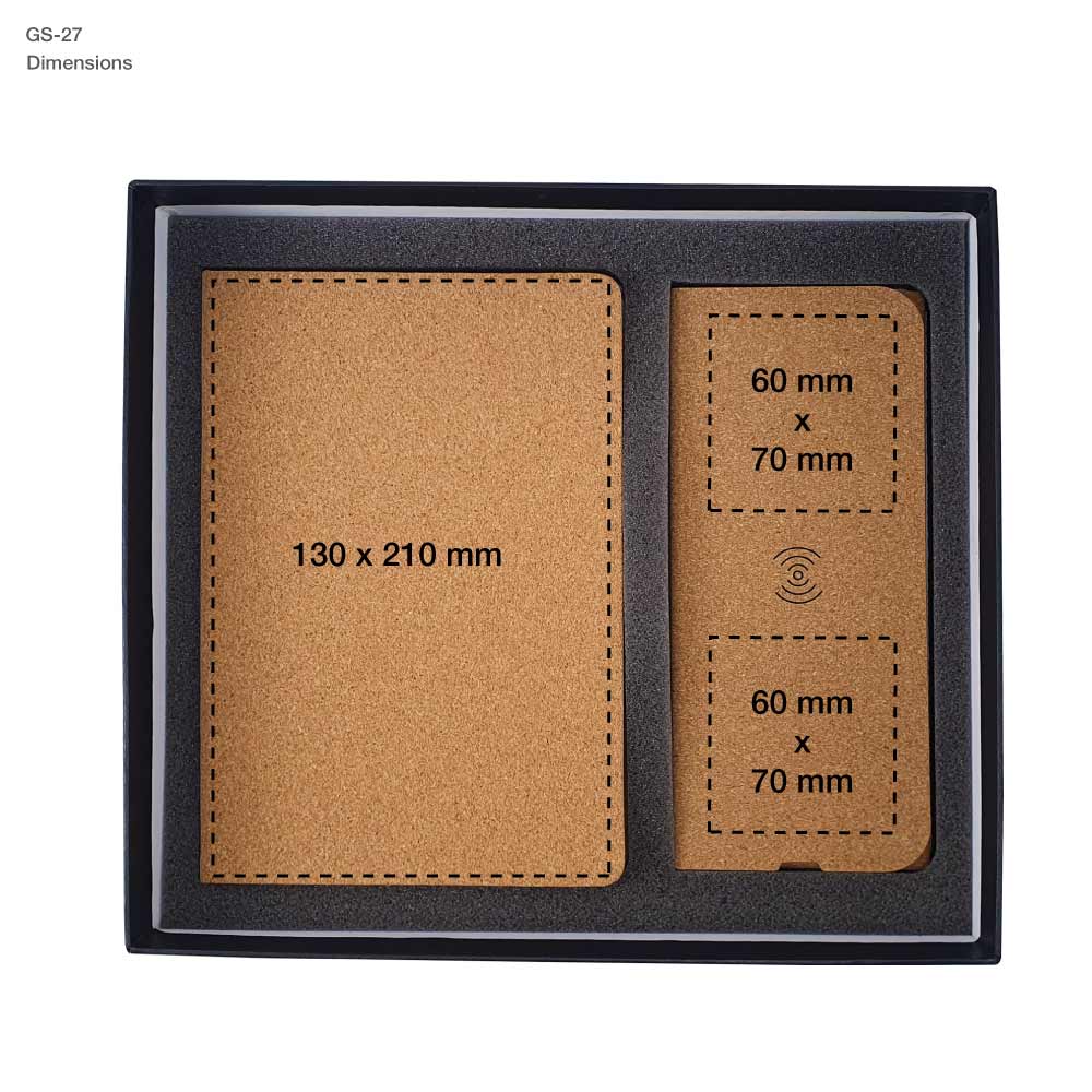 MB-05-C: Cork Cover A5 size Notebook | JU-WCM1-CO: Cork Foldable Mousepad with Wireless Charger