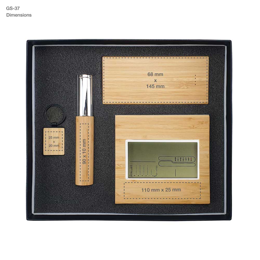 Eco-Friendly Gift Sets GS-037: Contains 4 products as listed beside. packed in a black gift box with a cushion inside for product protection and better presentation.