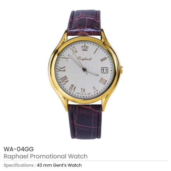 Couple watches are branded Raphael watches. These promotional golden watches had made from stainless steel and leather. Thus, they are reliable, stylish, and waterproof. Both the watches are in the same design. Plus, they have a traditional and elegant design. The size of the ladies’ watch is 28 mm while the gent’s watch is 43mm. It has a golden lustrous metal frame and maroon color leather straps. Unlike the frame, its dial is in white color. Plus, the needles and numeric marking are also in golden color. The dial of this branded watch is simple and plain. There is a roman marking on the dial. Thus, these enhance their traditional design. Moreover, its dial has a square area for displaying dates.