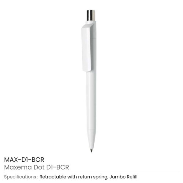Maxema Dot pens with white clips are cool business pens. They are crafted with reliable and highly resistant ABS plastic material. Thus, they are durable and safe for use. Its barrel is specially crafted with a solid white color. Thus, it has a glossy matte finish on the whole barrel. The design of this Maxema Dot pen is so stylish. The barrel, clip, and tip are the same color. All of them have a glossy finish on them. The dot pens also have a push-button which is silver plated. Thus, it gives the pen a luxurious look. It also comprises a jumbo refill so you can enjoy 2500m smooth flow writing.