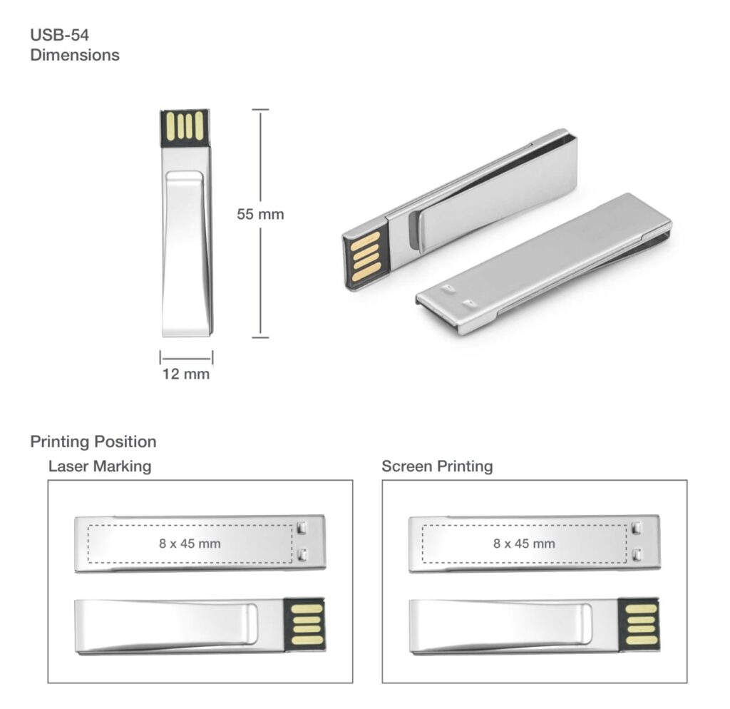 Introducing to you our amazing metal clip USB has a capacity of about 4GB, 8GB, and 16GB. So it has a good storage capacity for your pictures, videos, and documents. This high-quality USB comes with a large clip of metal attached to the Promo USB. The clip USB can be hooked to any shirt pocket, office bag, suitcase, or binder. Moreover, the silvery metallic structure of this USB has a large area. It is ideal to customize a USB with the logo or name of a particular organization or firm. In addition, this customized USB is a decent promotional item to be distributed as a promotional gift.
