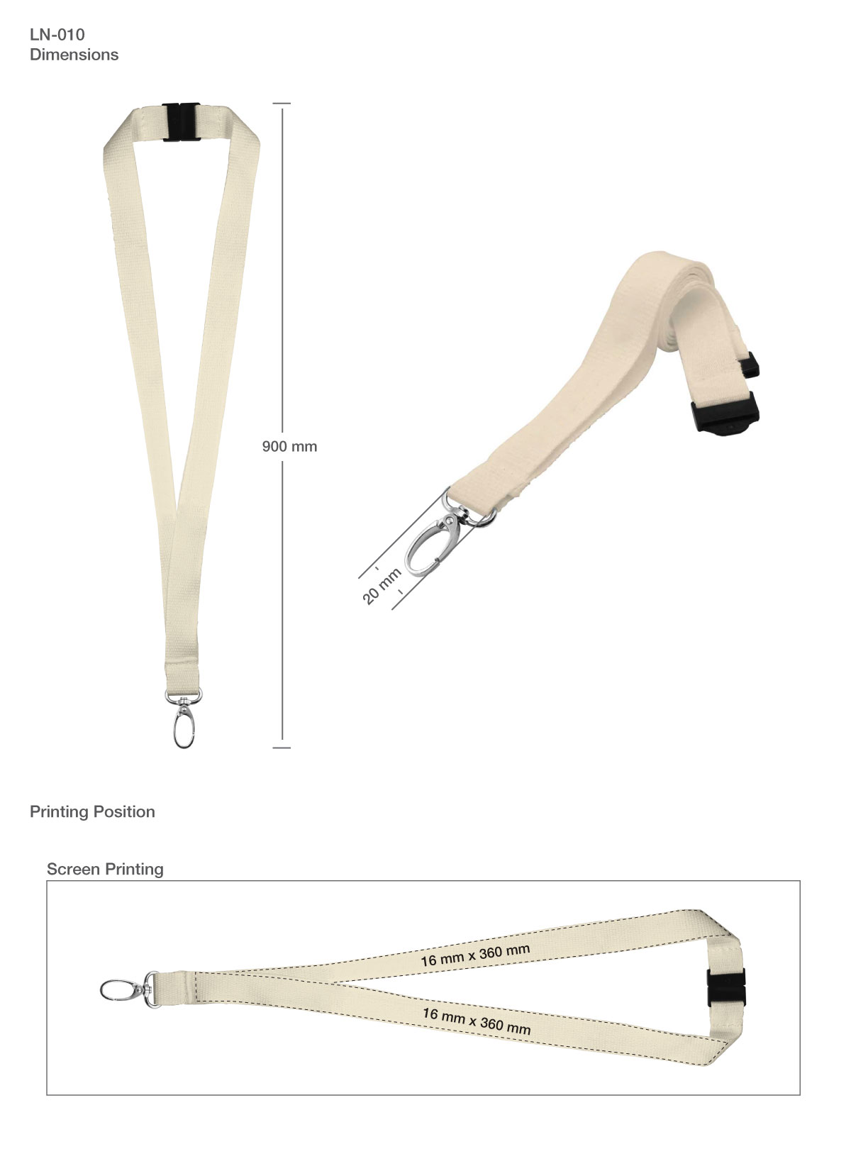 Lanyards manufactured from organic cotton. At any given time, it offers various functional choices. These cotton lanyards save your documents with a hook, safety lock, and buckle. It also contains a hook on which you may hang your cards. A safety lock keeps your documents safe. Moreover, a buckle keeps the records together by holding everything in its place. This attribute adds to its appeal. You can also use it in conjunction with other lanyard accessories. Available in a 2x90cm size. A one-color screen printing option is available. You can print any design on it.