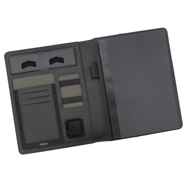 Power bank portfolios are creative and branded portfolios. This portfolio folder had made from polyurethane leather. Thus, it makes this folder reliable. These portfolio folders comprise a 6000 mAh power bank. Thus, this power bank will help you in keeping your devices charged. It also has compartments for organizing your documents and accessories.  Moreover, it comprises a stylish magnetic clasp for secure storage. Thus, these portfolio folders are for multiple purposes. You can use it for holding mobile phones, cards, and pens. It also has a pocket for mobile cables. Thus, these are perfect branded portfolios for your business promotion.