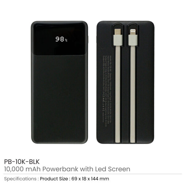 Powerbank with LED Screen 10,000 mAh & Built-in Cables