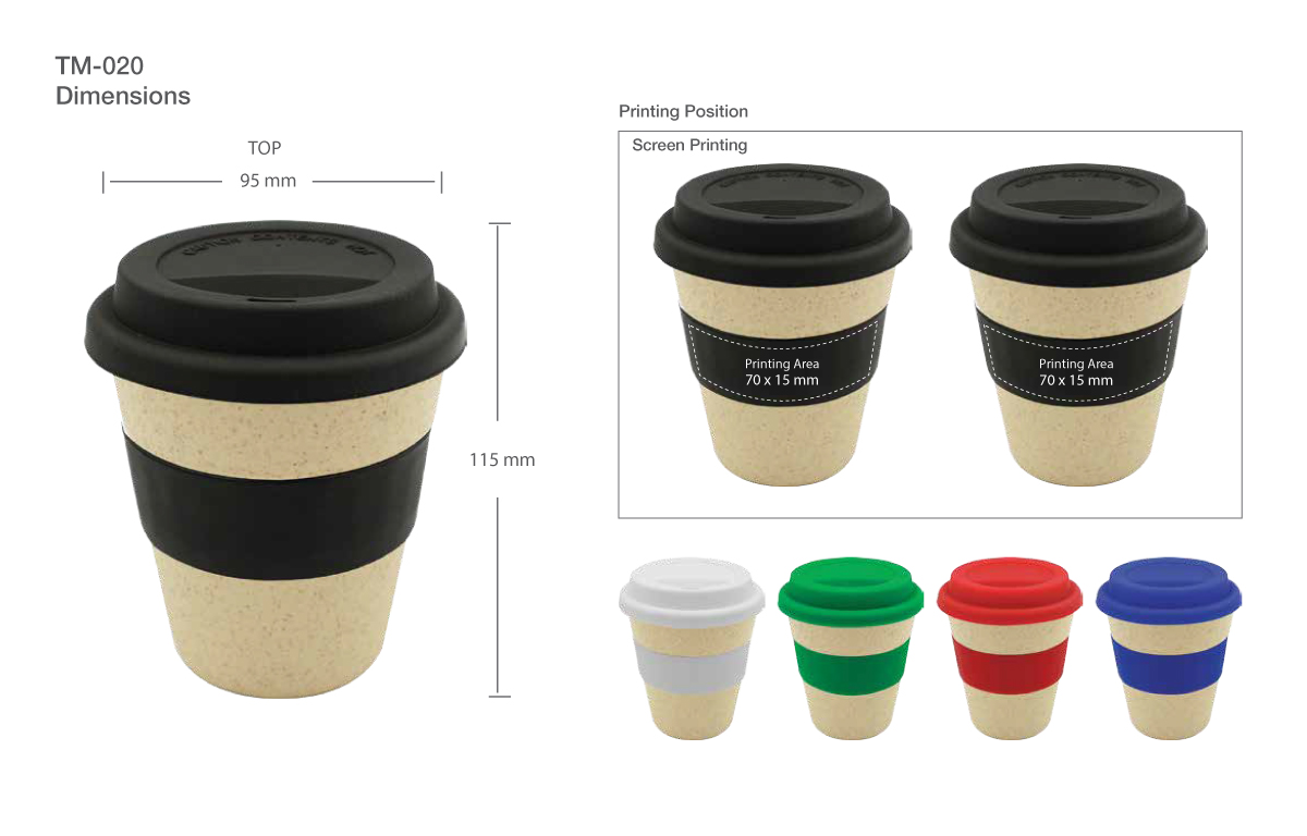 The size of these wheat straw cups is so compact. Thus, they are portable and convenient to use. Therefore, you can easily carry them in your hands. The total capacity of these cups is 350ml. Thus, it is enough to contain espresso or tea. These cups have silicone bands that are available in different colors. The available colors of bands and lids are white, black, red, blue, and green. It comes with a screen printing option. Thus, you can customize these printed straw cups with the logo of your company and brand. These are the best options for promotional gifts. Thus, they will surely help you in gaining more customers. They are environment-friendly and branded straw cups in Dubai.