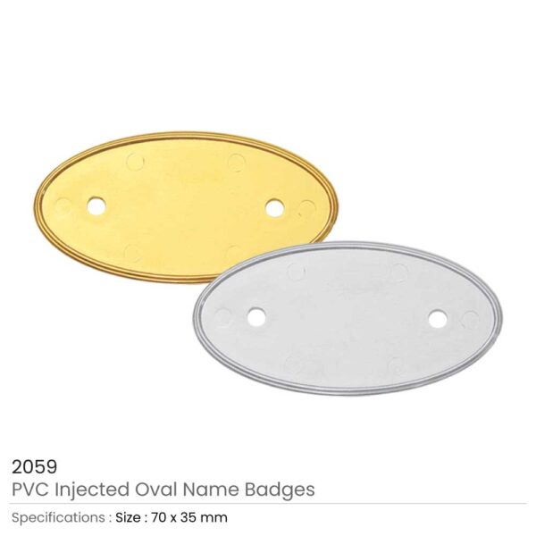 PVC Injected Oval Logo Badges made from durable PVC material, available in 75 x 35 mm and 242 x 60 x 50 mm sizes. Ideal for corporate branding, events, and promotions with high-quality digital printing and epoxy coating.