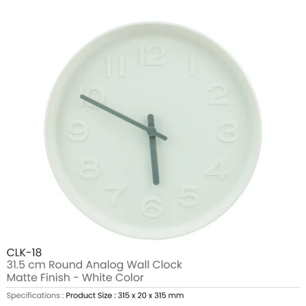 Our Round Analog Wall Clock combines a clean, elegant white matte finish with reliable quartz movement to bring timeless style and accurate timekeeping to offices, homes, classrooms, and event spaces. The embossed number digits and clearly marked hour and minute hands make it exceptionally easy to read from a distance, while the lightweight ABS plastic construction ensures durability and affordability. Supplied in a top-open white carton, this clock is ideal for corporate gifts, branded merchandise, and bulk promotional orders.
