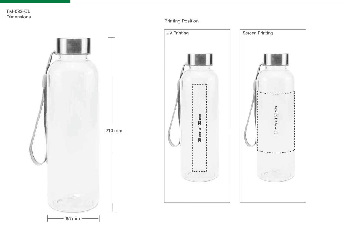 - Material: RPET | Capacity: 550ml | Size: 65x65x210 mm | Item Weight: 0.077 kg