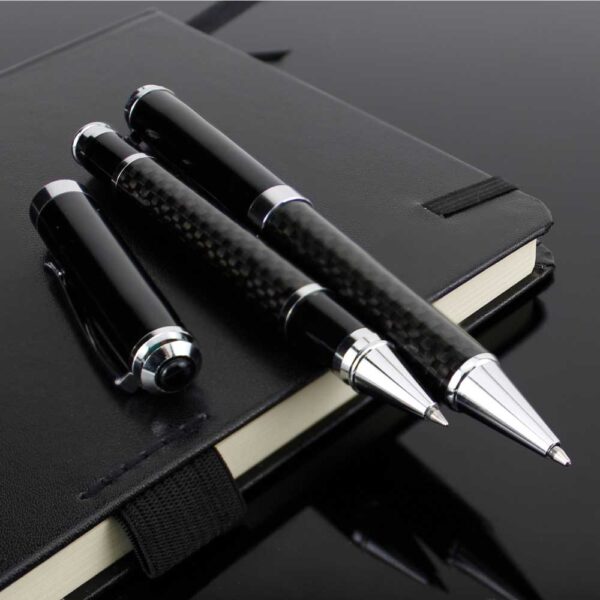 Saturn Raphael Exclusive pens are luxury pens. They had crafted with a reliable metal material. Thus, they are durable and long-lasting. The design of this pen is so stylish. Its barrel had a special carbon fiber design. This design had made with grey color on black metal. Thus, it has a glossy and luxurious look. While apart from the barrel the cap and top of this pen are in glossy black metal. They are perfect for business events such as seminars, conferences, and meetings. Thus, these are excellent promotional gifts in Abu Dhabi.
