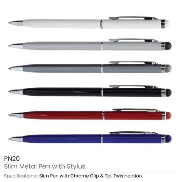 Slim metal pens with a stylus are awesome pens. They are created with a shiny metallic material. Thus, it is glossy and durable at the same time. This pen comprises a slim metallic barrel. The barrel is colorful. While the tip is silver. It’s a 2-in-1 pen. So, it comprises a ball pen and a stylus. The stylus is present at the top of the slim pen. It is of the same color as the barrel. Thus, you can use it on your smartphone. Apart from the barrel, it also comprises a silver chrome clip. Thus, it’s a perfect personalized slim pen with a stylus. Thus, you can also use this personalized pen with a stylus for events.