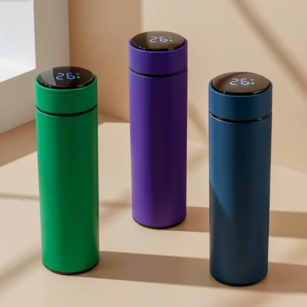 Upgrade everyday hydration with our Smart Temperature LED Display Bottles, designed with a premium soft-touch rubberized coating and an intelligent touch sensor lid. The built-in LED temperature display allows you to check the beverage temperature instantly without opening the bottle. Featuring double-wall vacuum insulation, this stainless steel bottle keeps drinks hot or cold for extended hours while maintaining a sleek, easy-to-grip slim design.