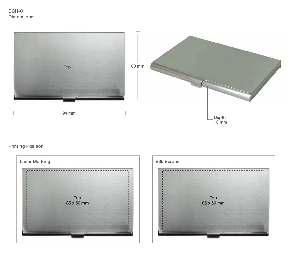 - Laser marking and screen printing are available.