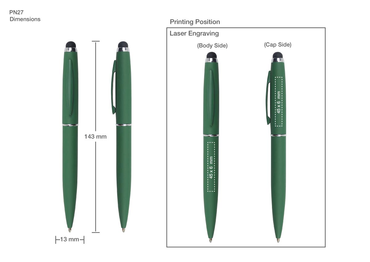 Moreover, it’s a 2-in-1 pen. So, it comprises a ball pen and a stylus. The stylus is present at the top of the pen. It is in black. Thus, you can use it on your smartphone. Apart from the barrel, it also comprises a clip. The clip is the same color as the barrel. Thus, it’s a perfect personalized pen with a stylus. Thus, you can also use this personalized pen with a stylus for events.