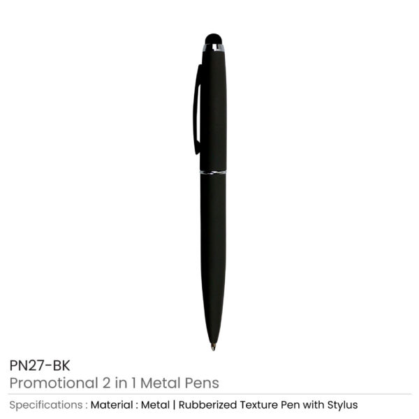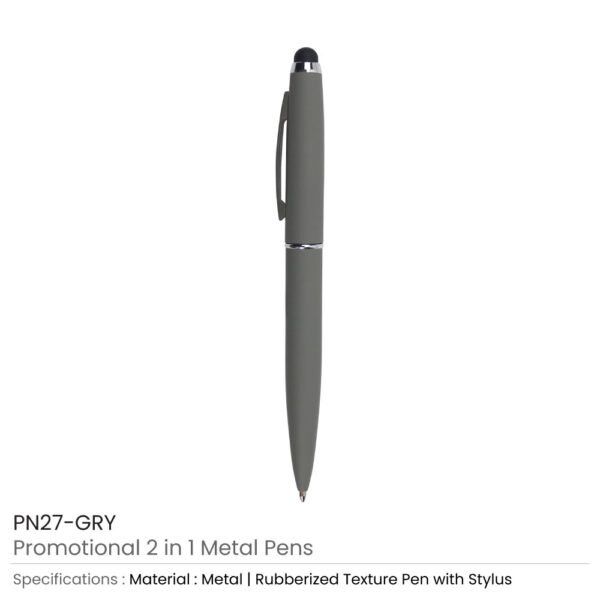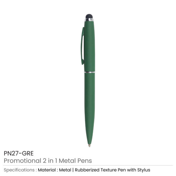 Stylus metal pens are cool and elegant pens. They had been created with a strong metallic material. Thus, they are durable and long-lasting. This pen comprises a colorful metallic barrel with a silver chrome ring in the middle. Both the barrel and tip are in the same color. The whole structure of the pen is rubberized.