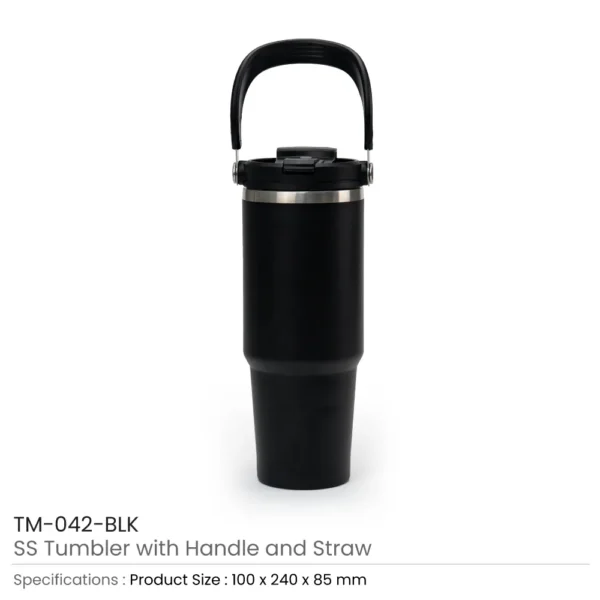 Tumbler with Handle and Straw SS Double Wall 900ml