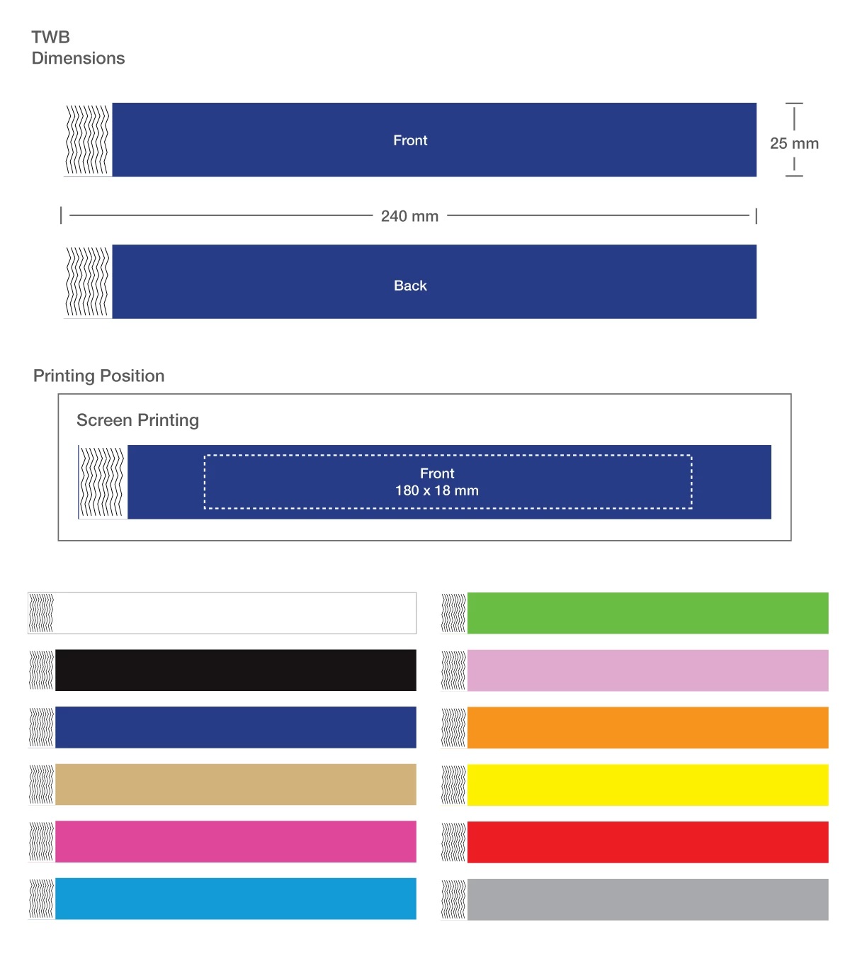 - Wristband size: 240 x 25 mm.