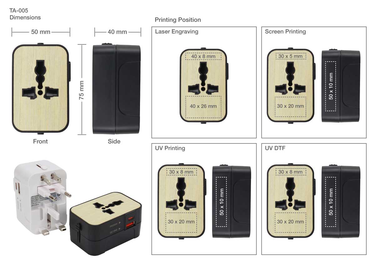 Travel Adaptor Printing Details
